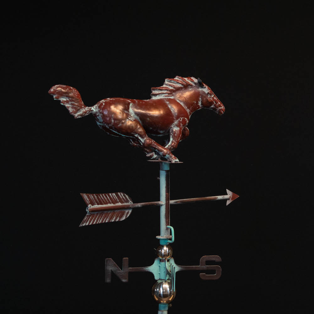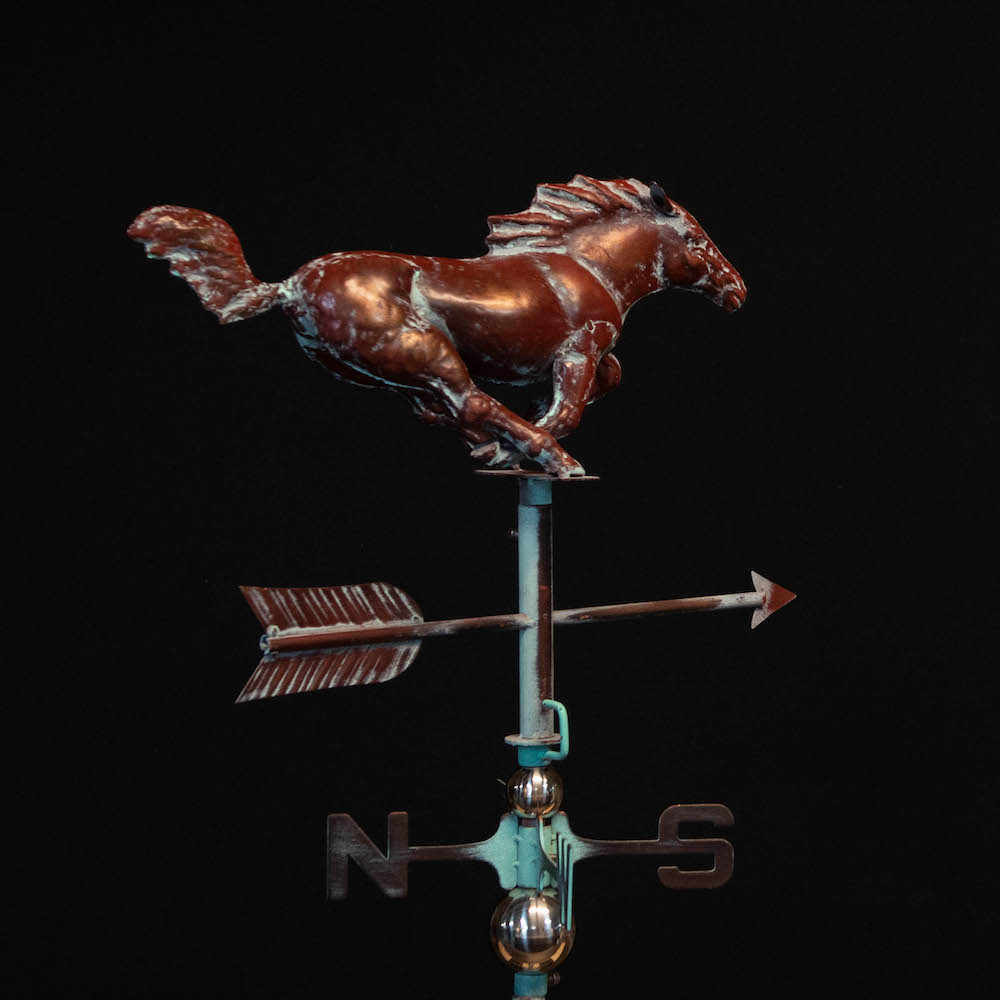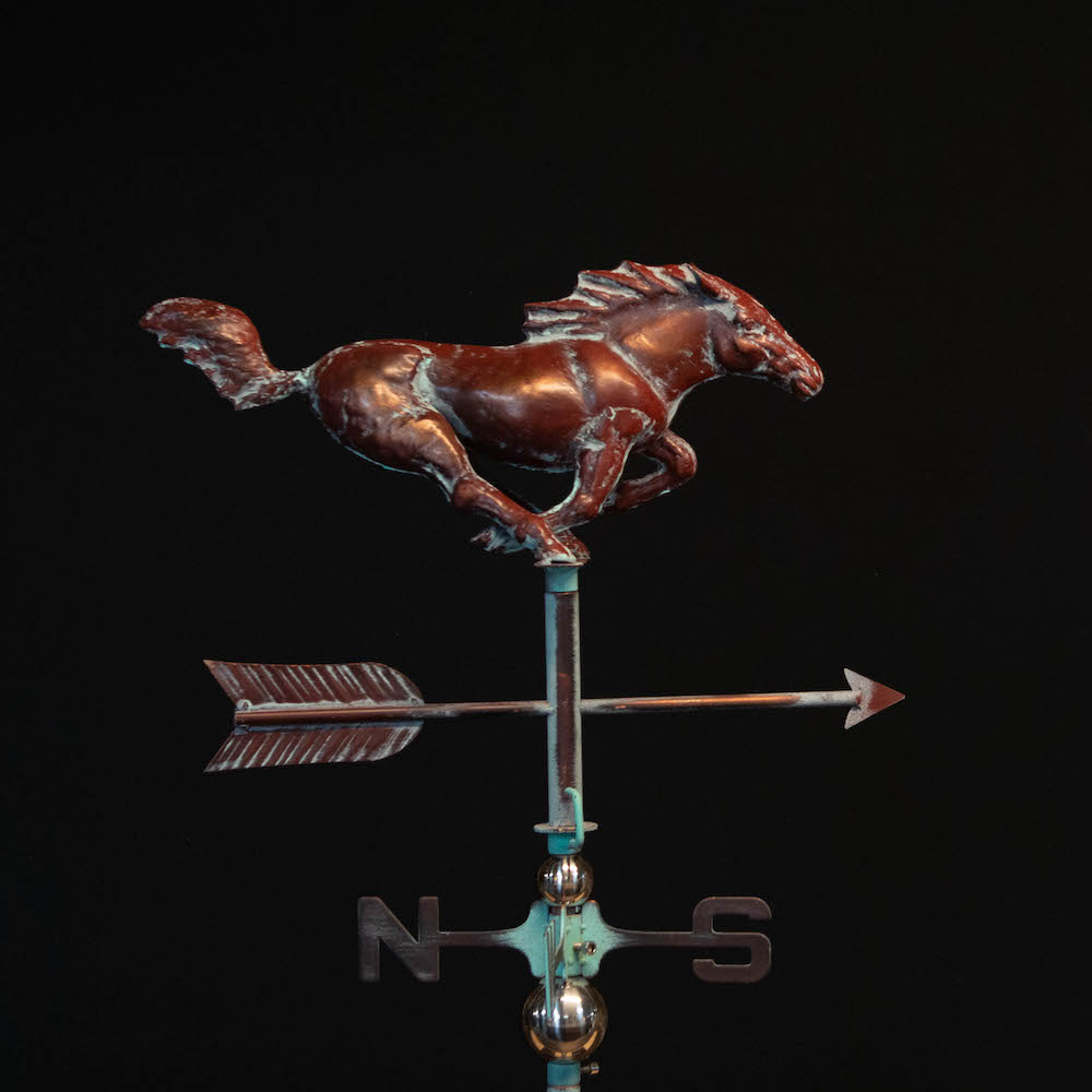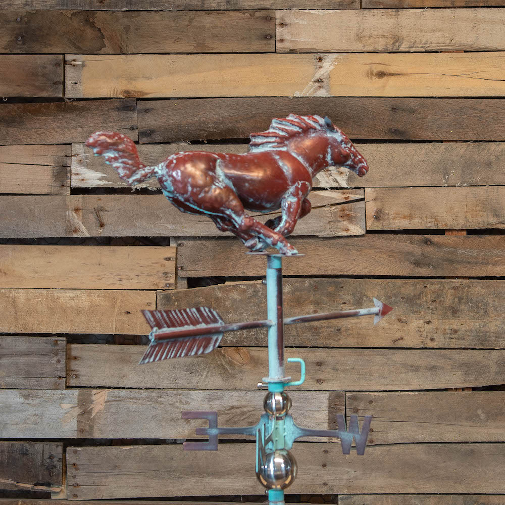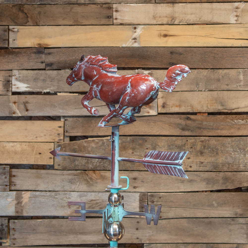 3D Full Running Horse Weathervane, Handcrafted Metal, Copper Patina Finish
